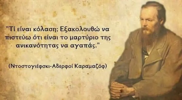 «Το μυστήριο της ανθρώπινης ύπαρξης δεν βρίσκεται απλώς στο να μείνεις ζωντανός, αλλά στο να βρεις κάτι για το οποίο θα ζήσεις.» ~Φιοντόρ Ντοστογιέφσκι (11 Νοεμβρίου 1821 - 9 Φεβρουαρίου 1881)